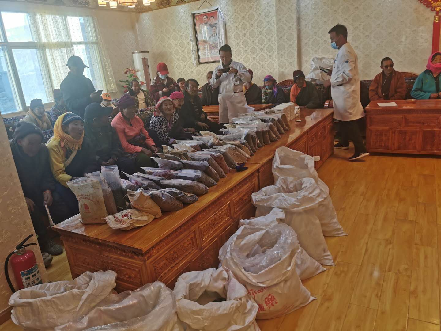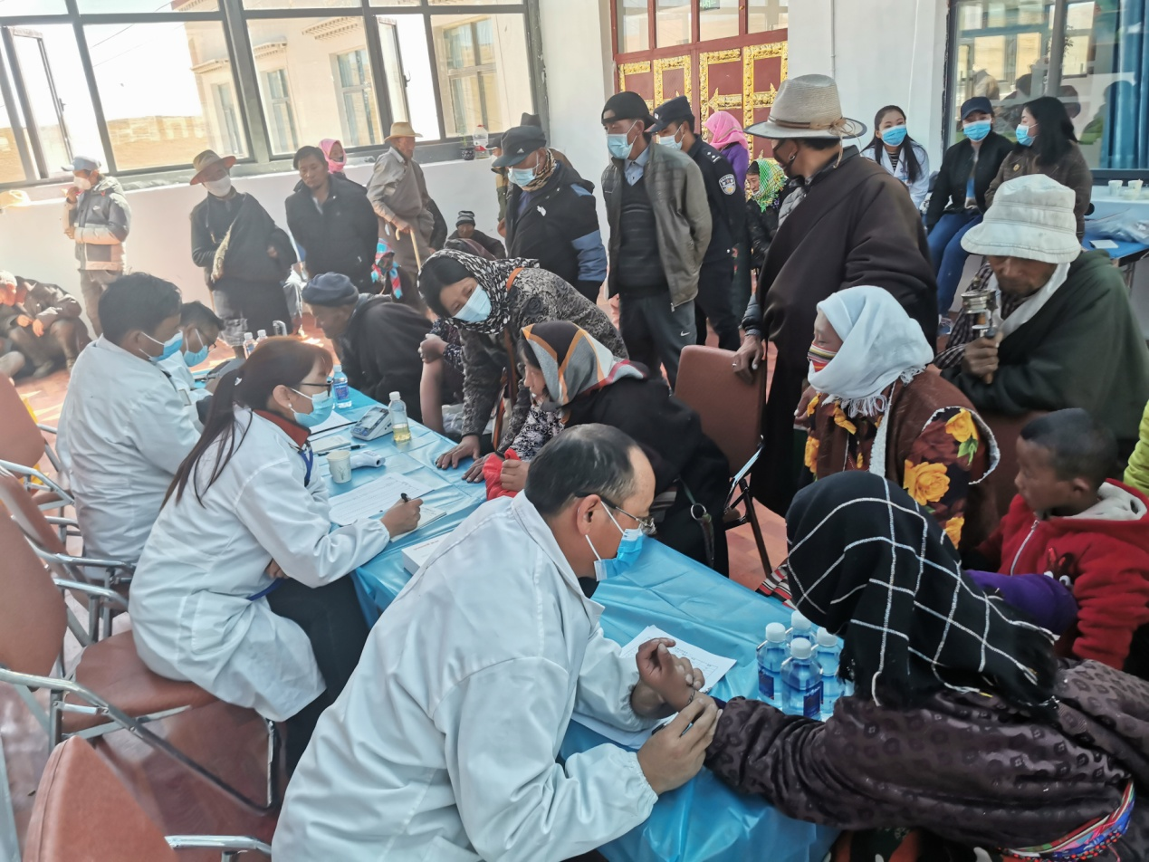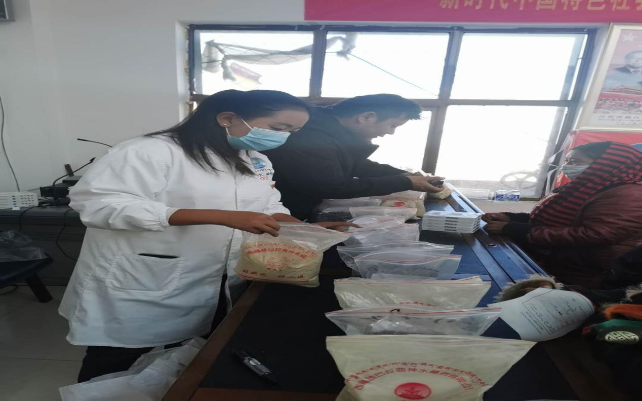 為切實(shí)貫徹落實(shí)自治區(qū)黨委、區(qū)工商聯(lián)等上級(jí)部門提出的“百企幫百村”扶貧工作指示精神,2020年10月14日,由公司黨支部組織帶領(lǐng)企業(yè)藏醫(yī)醫(yī)人員先后前往那曲市雙湖縣多瑪鄉(xiāng)、那曲市班戈縣保吉鄉(xiāng),班戈縣五保集中供養(yǎng)服務(wù)中心,班戈縣佳瓊鎮(zhèn)開展了為期5天的送醫(yī)送藥活動(dòng),義診組一行克服高海拔、寒冷天氣,缺氧不缺精神,切實(shí)解決了當(dāng)?shù)啬撩袢罕娋歪t(yī)難,缺醫(yī)少藥的問題,在此次活動(dòng)期間我公司專家人員細(xì)心向牧民群眾講解各種疾病的防護(hù)措施,認(rèn)真細(xì)致的對(duì)每一名牧民群眾進(jìn)行問診,發(fā)放藥品,本次共計(jì)發(fā)放藥品累計(jì)24萬(wàn)多元,問診牧民群眾共計(jì)900多人,前來(lái)看病的群眾絡(luò)繹不絕,認(rèn)真細(xì)致的問診,熱切關(guān)心的問候,把神水藏藥公司對(duì)農(nóng)牧民群眾的關(guān)心和愛護(hù)體現(xiàn)得淋漓盡致??床〉拇迕穸颊f(shuō)“像這樣的義診活動(dòng)很好,不用到醫(yī)院排隊(duì),在家門口就能看好病。